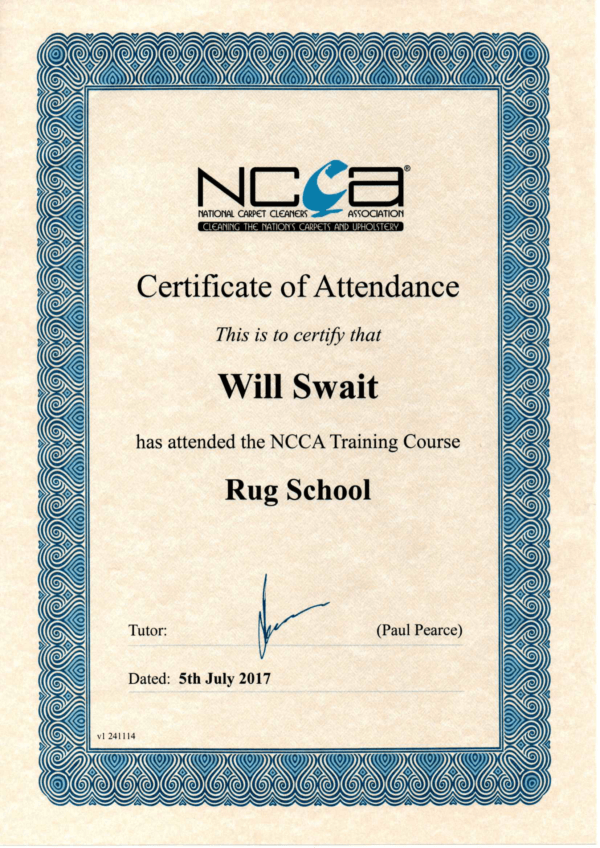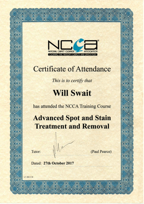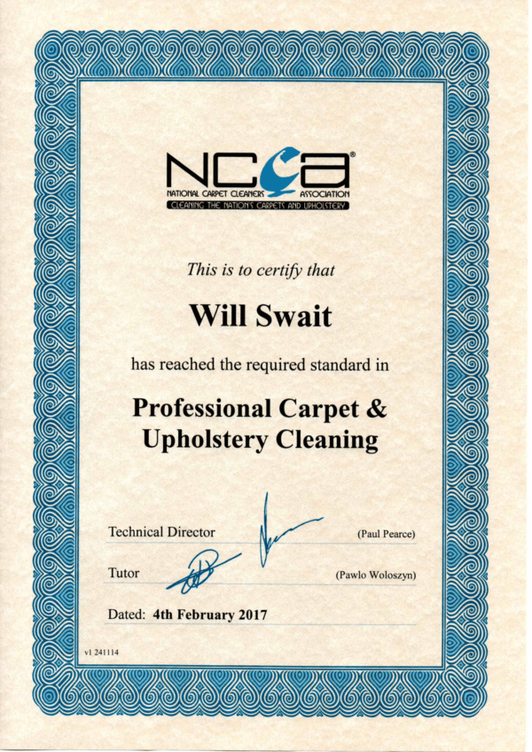 We are proud to be a member of the National Carpet Cleaners Association (NCCA) which is the only nationally recognised trade association in the industry. Every one of its members holds a recognised qualification, is fully insured for their work and can provide the highest standards of service and professionalism within the industry. Members are required to abide by the Association’s Code of Practice, which covers such specifics as fair pricing, service, complaints procedures, liability and consumer protection, and is designed to ensure customer satisfaction at all times. All members are expected to provide a fair deal for their customers, summed up by the NCCA motto, “Service with integrity”.
