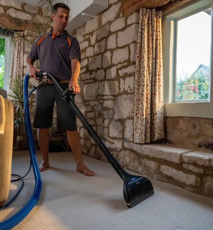 Cotswold carpet cleaners are continually looking for ways to improve both carpet and upholstery cleaning services. Outlined below is by far our most popular method, hot water extraction. However following our inspection it may be that a low moisture clean is more suitable for the material and/or your situation, we offer several advanced methods to clean even the most delicate materials.